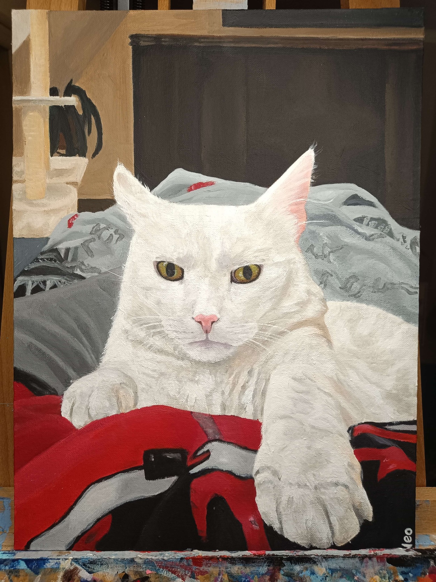 Every artist has their "cursed" painting. For me, it was the portrait of my dads cat, Bilek. Sadly, Bilek is no longer with us, so I wanted to honor his memory the best way I know how – with colors on canvas. Naively, I thought: "It's just a white shape with a few shadows, it'll be a breeze."